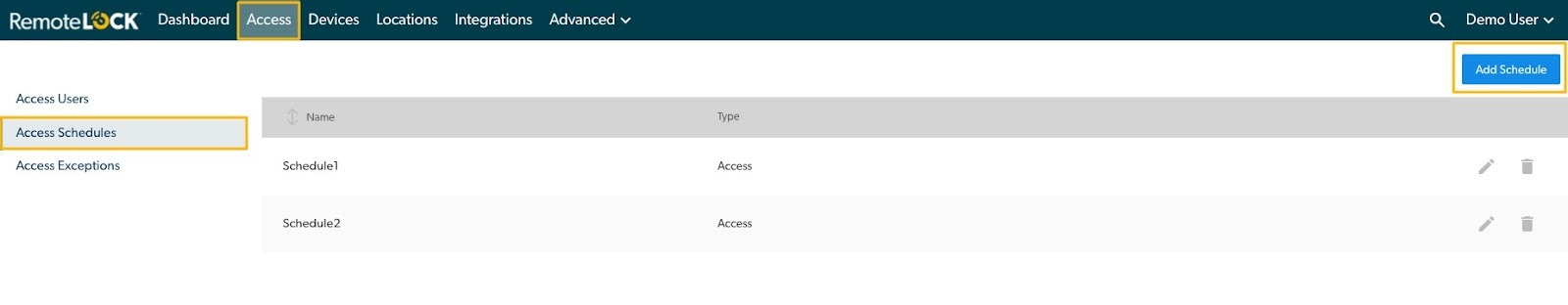 Access Schedules are used to limit access to the doors & locks a user or guest is given access to.